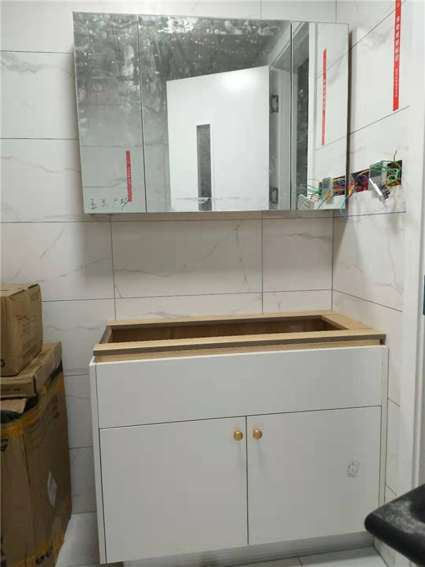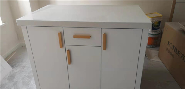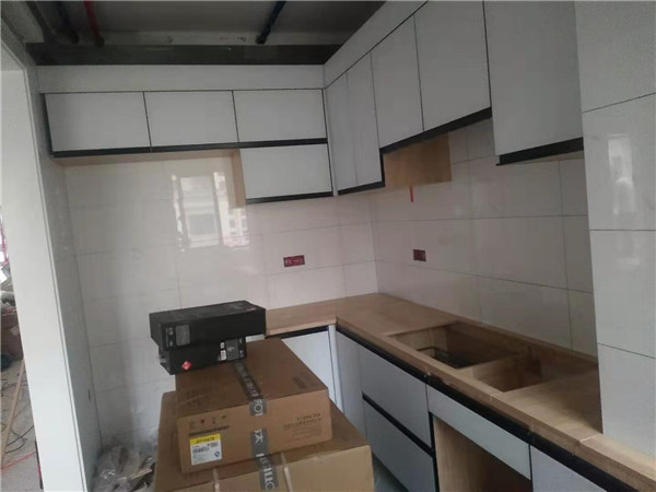 師傅們偷懶了,沒給我拍細節圖 ,直接上安裝好的成品照了,簡單粗暴,請看圖。櫥柜采用的是晶鋼門板,