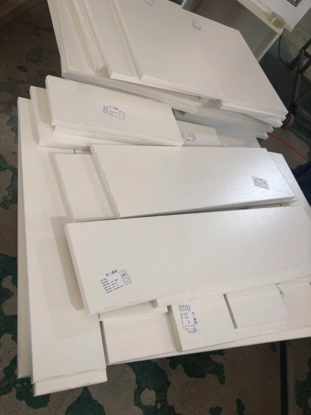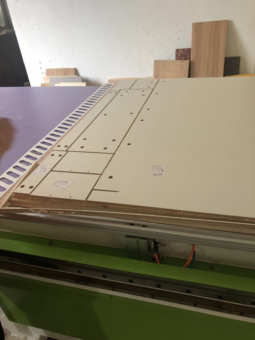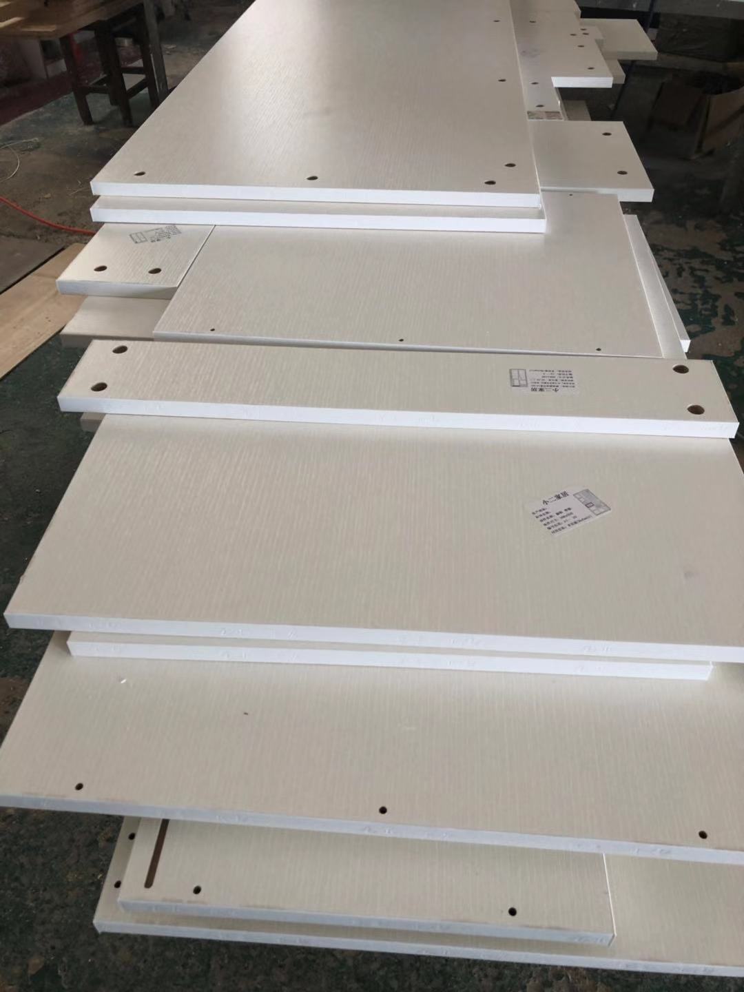 所有的柜體門(mén)板都封完邊了,師傅還在打側(cè)邊孔,打完就可以打包了。