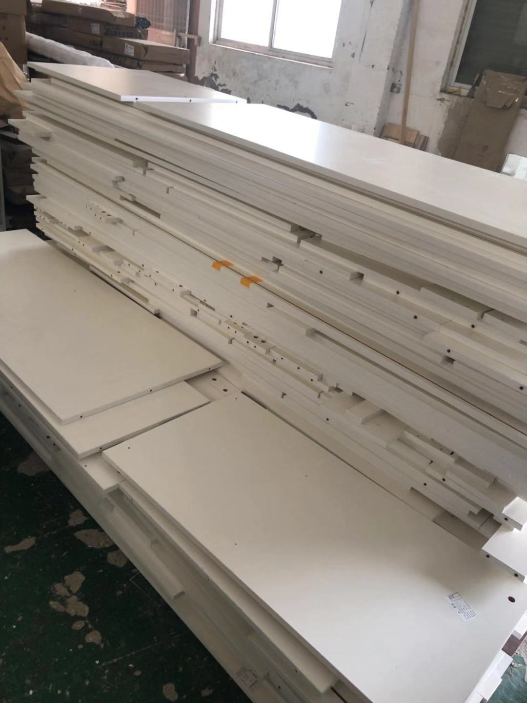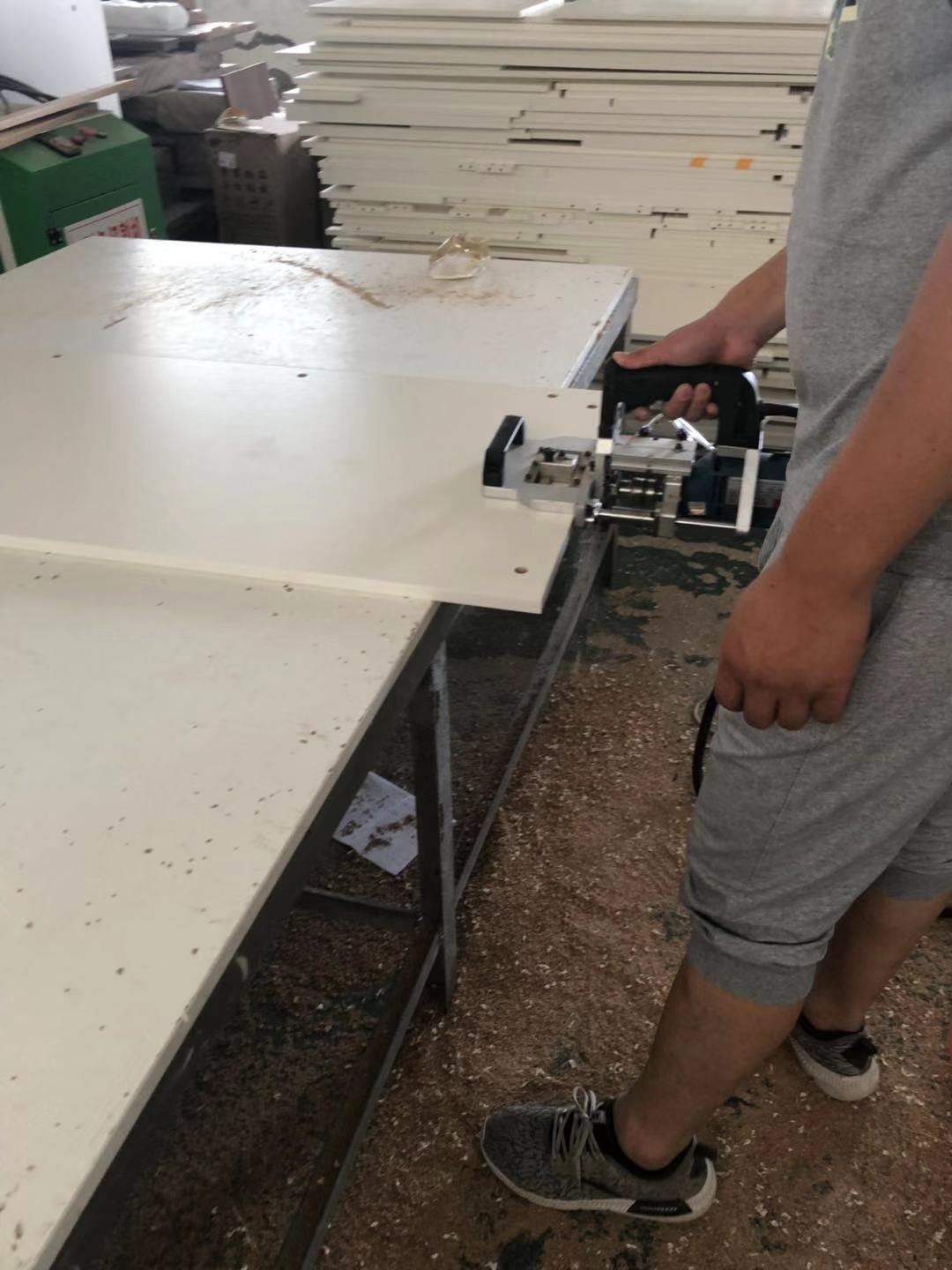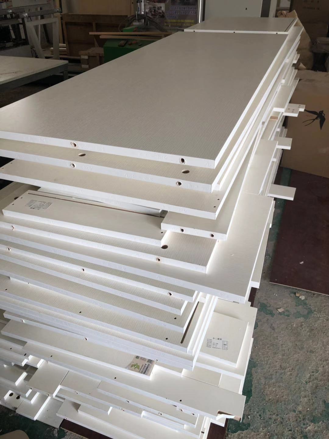 所有的柜體門(mén)板都封完邊了,師傅還在打側(cè)邊孔,打完就可以打包了。