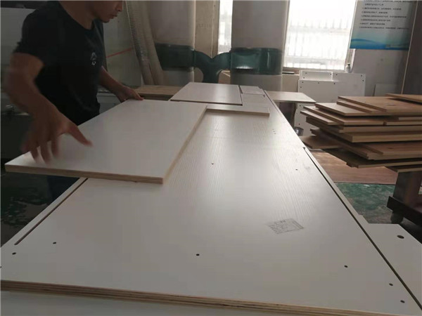 柜體封邊完畢,打孔中。一場秋雨一場寒,現在師傅們干活比較輕松啦!