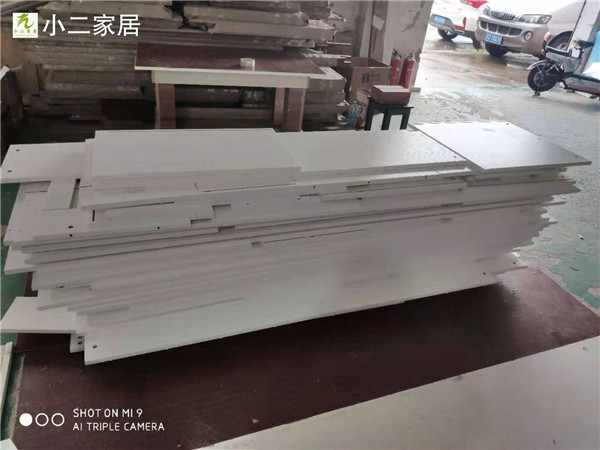 封邊采用法國波士熱熔顆粒膠,設備溫度達到190°C封出來的邊牢固,沒有爆邊,完美無瑕。封邊條上都帶有小二家居logo的哦!板材使用平安樹實木多層暖白,有高級的藍光防偽。