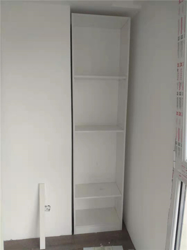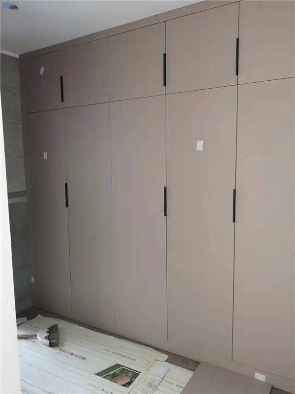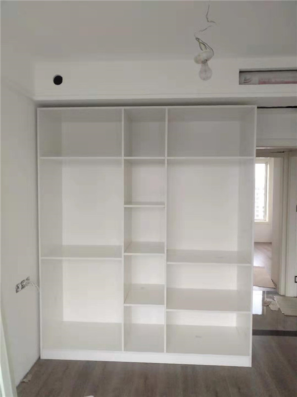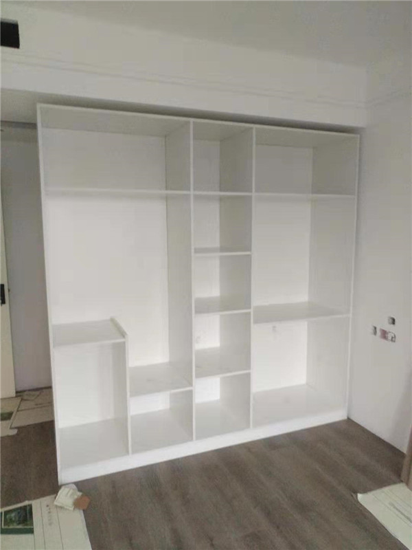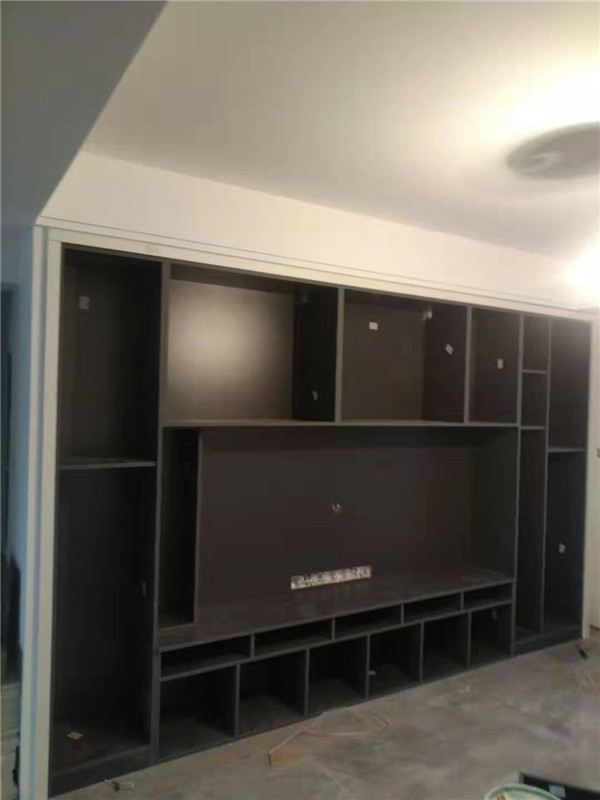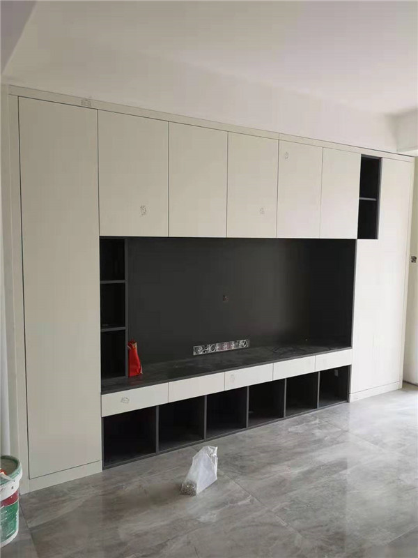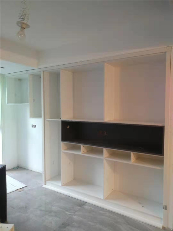 師傅兩天的勞動成果,柜體已拼裝的差不多了,今天把門安排上,柜子的整體效果就出來了,一起期待最后的安裝效果吧!