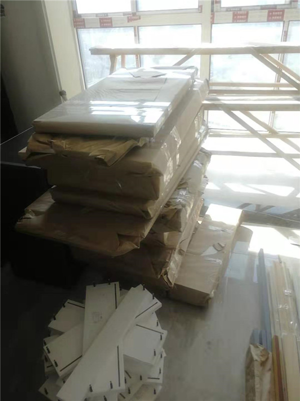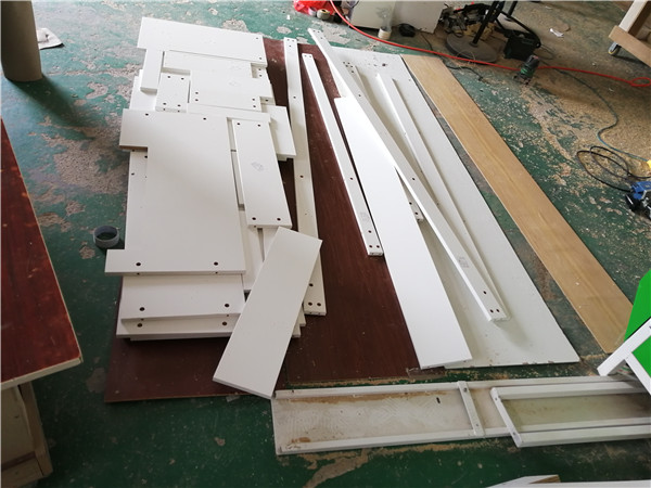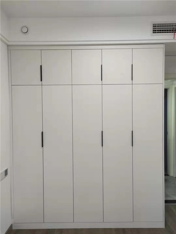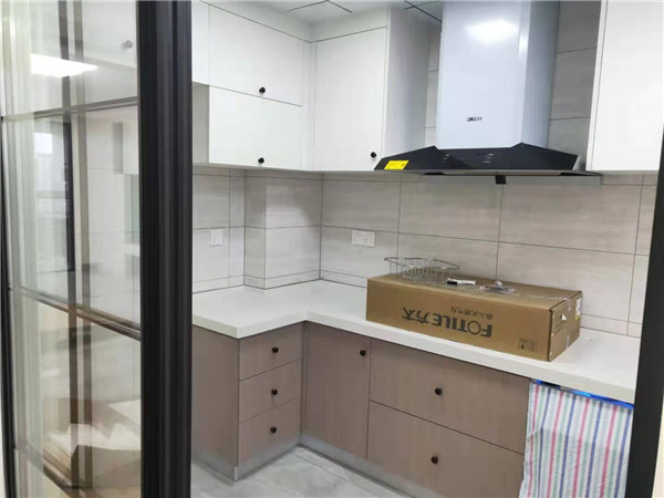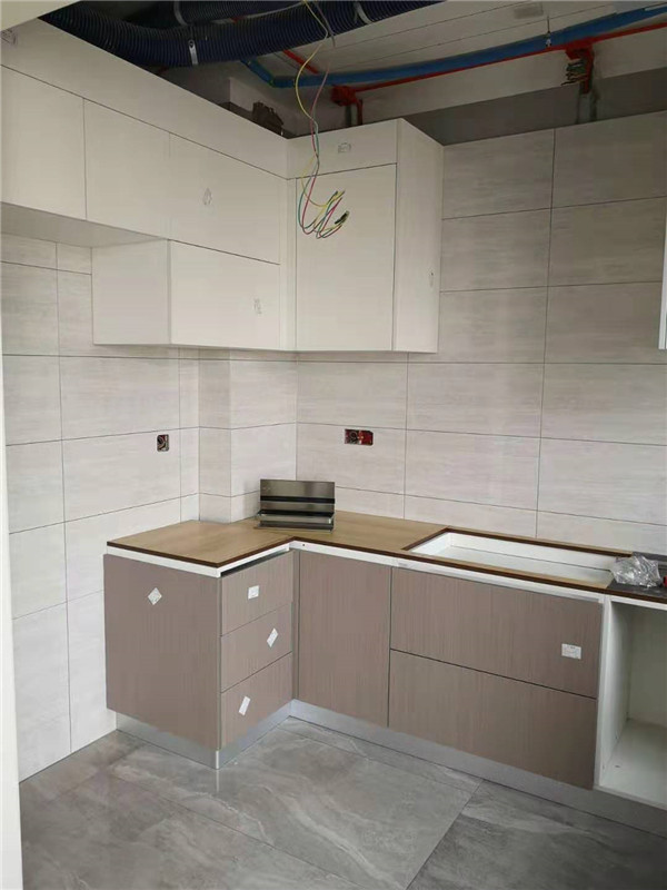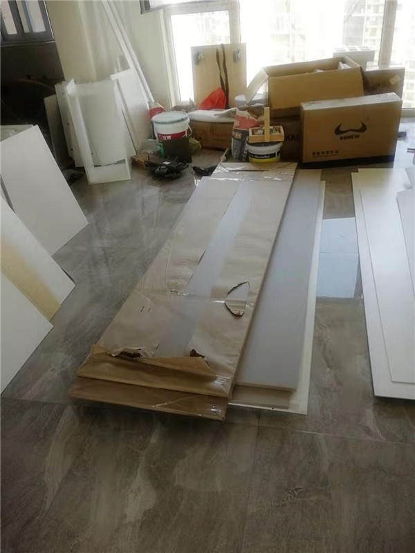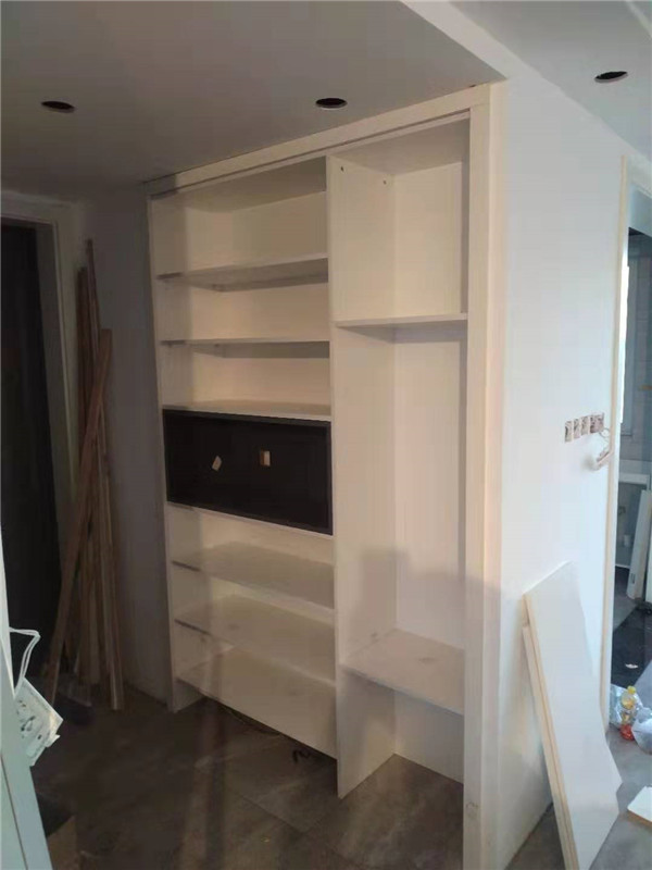 師傅兩天的勞動成果,柜體已拼裝的差不多了,今天把門安排上,柜子的整體效果就出來了,一起期待最后的安裝效果吧!