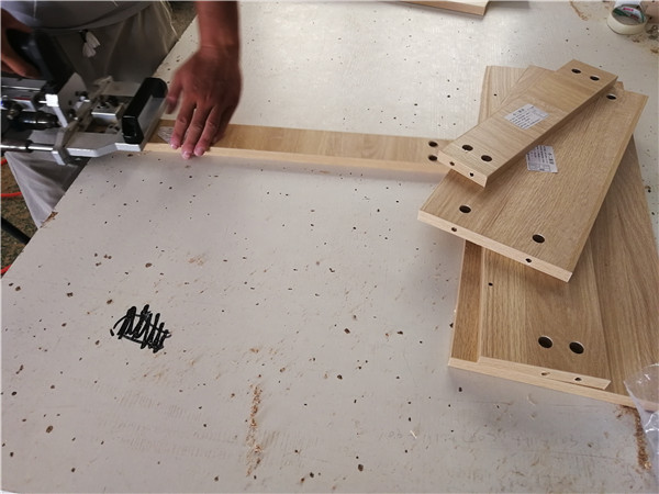 柜體打孔中,然后就能打包,然后就能安排送貨啦!天氣涼快,速度更快了。