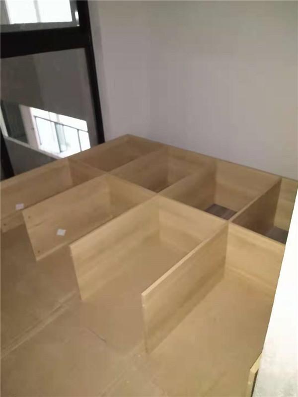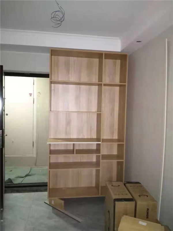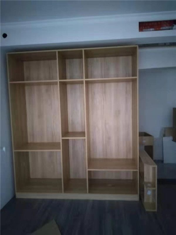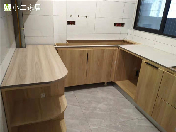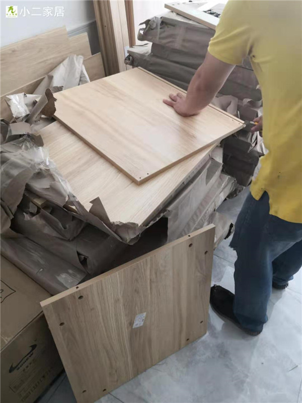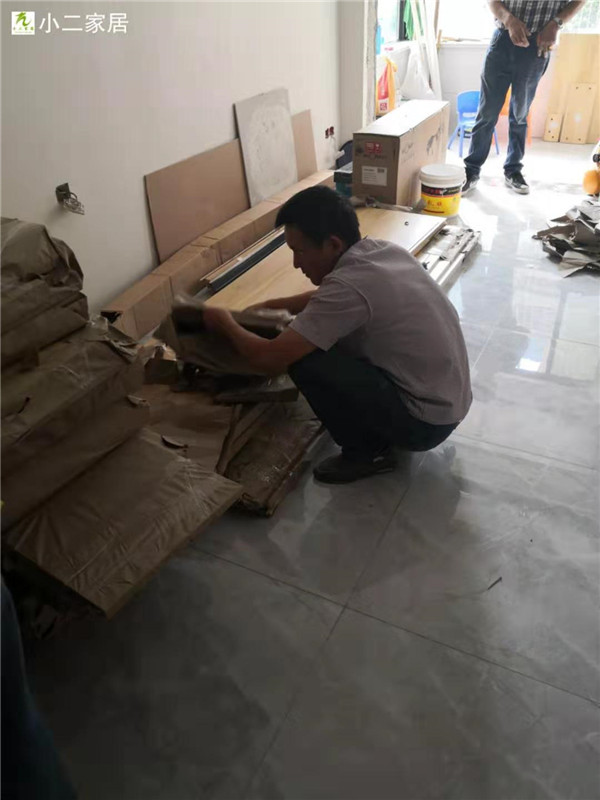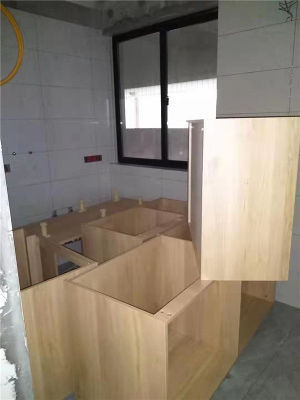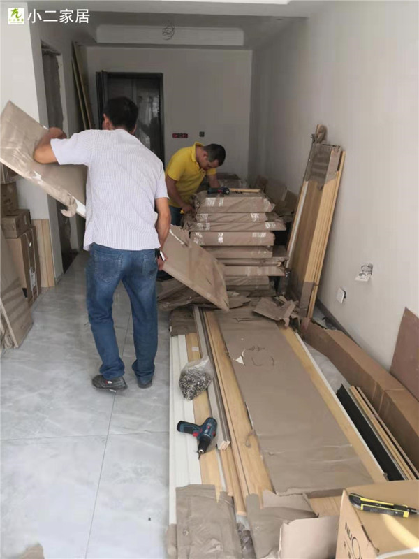 部分柜體已拼裝完畢,師傅們動作蠻快的