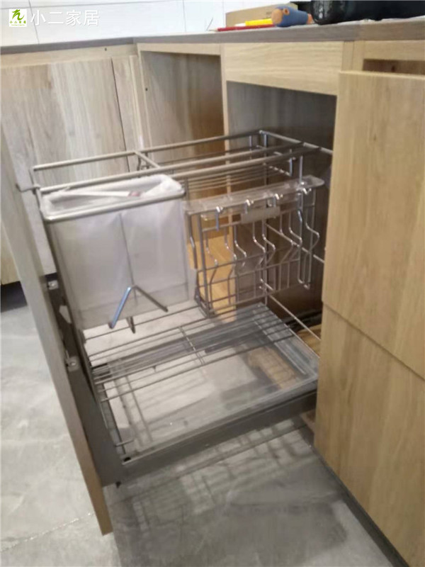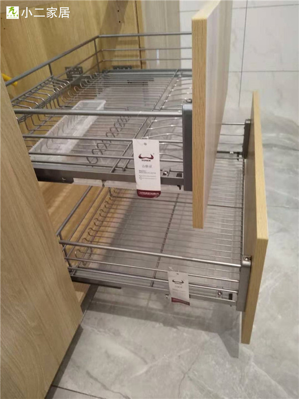 標配五金:ABS尼龍柜腳,諾米拉籃三件套,海蒂詩導軌,諾米鉸鏈,索菲亞衣桿。拉手對得整齊的,水槽下面都鋪有錫紙的哦!請看細節圖