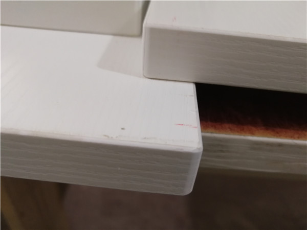 設備溫度達到200°C封出來的邊牢固,沒有爆邊。封邊條上都帶有小二家居logo的哦,方便后期售后。
