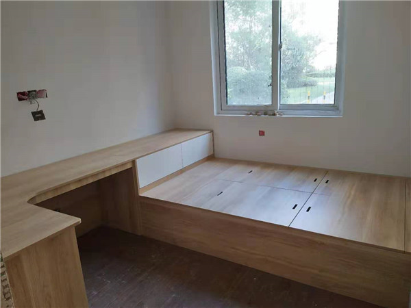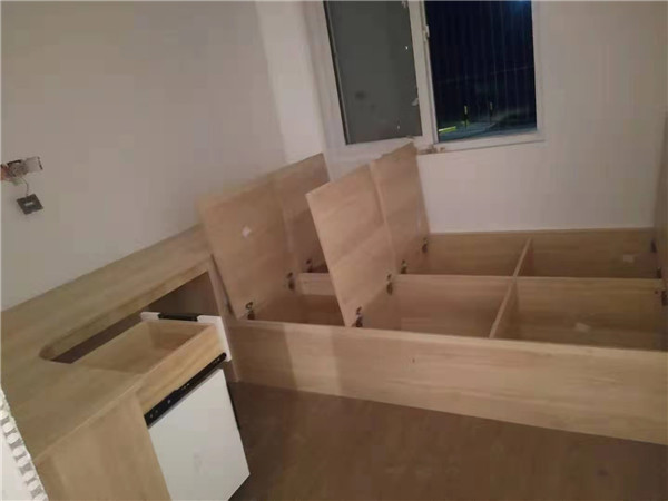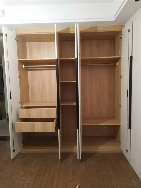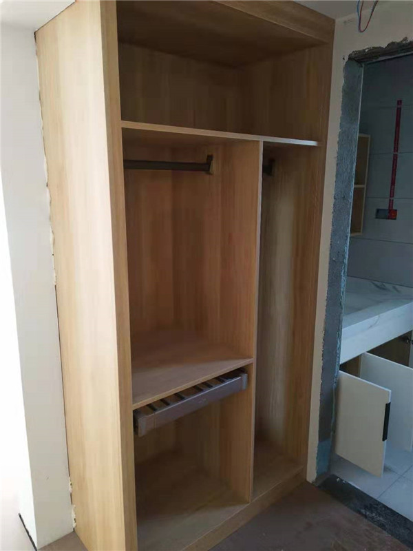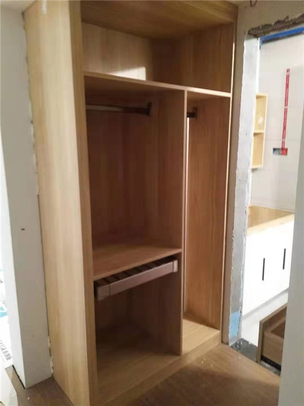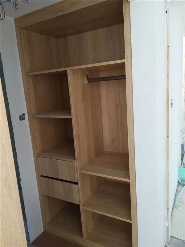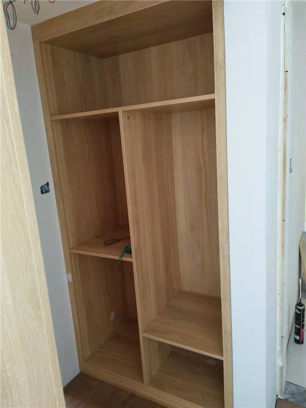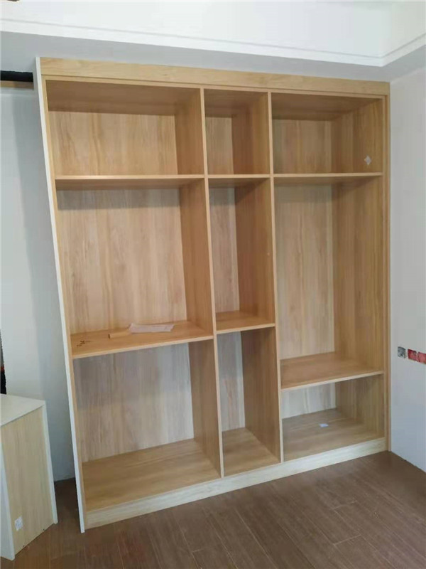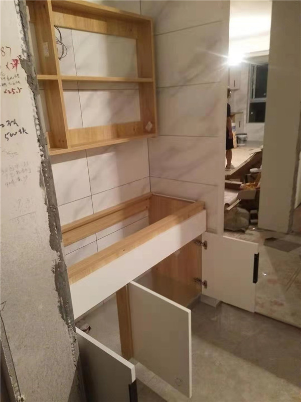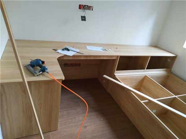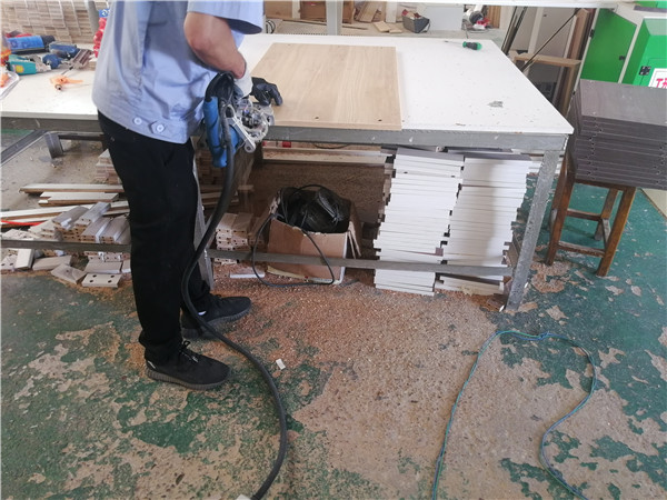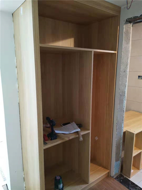 開(kāi)始制作啦,專(zhuān)業(yè)設(shè)備裁板,沒(méi)有爆邊。櫥柜、衣柜分別使用平安樹(shù)霧麻暖白、清水橡木實(shí)木多層板E0級(jí)制作,帶有高級(jí)的藍(lán)光防偽標(biāo)識(shí),更安心!