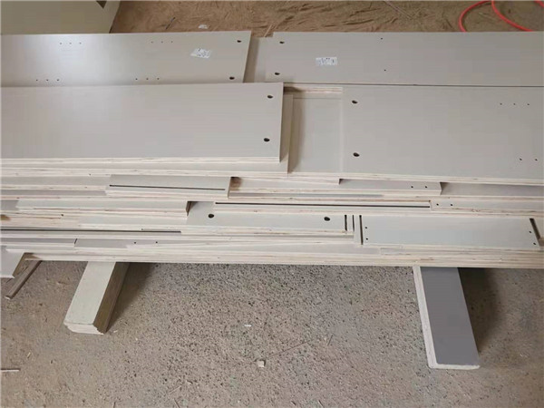 裁板進行中,柜體裁板中,邊口都是直的,沒有爆邊的情況,這樣后面封邊更圓滑。板材使用平安樹實木多層板E0級制作,有高級的藍光防偽標識哦