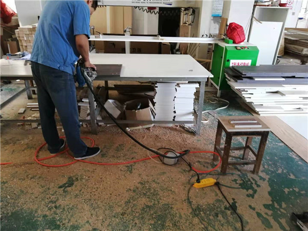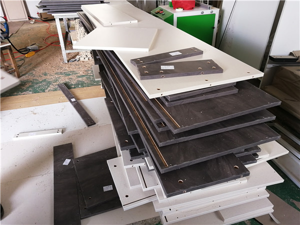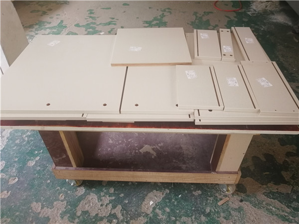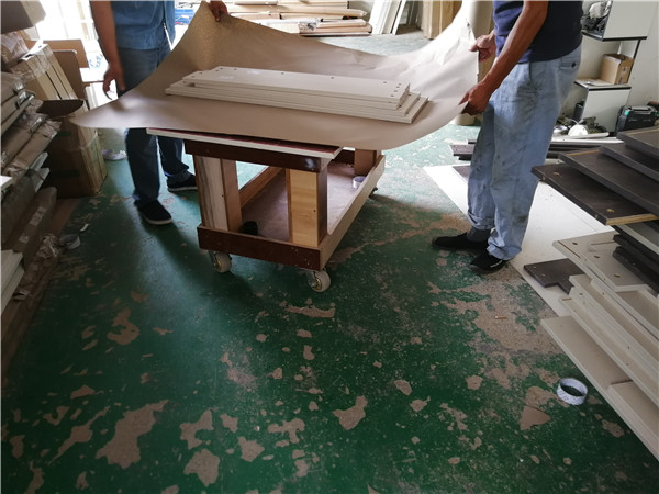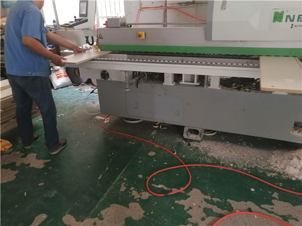 開始封邊了。封邊采用法國波士熱熔顆粒膠,設備溫度達到190-200°C封出來的邊牢固,完美無瑕。每塊板上都貼有小標簽,方便后期安裝師傅安裝。部分衣帽間柜體還在裁板中,今天應該能全部裁完了。