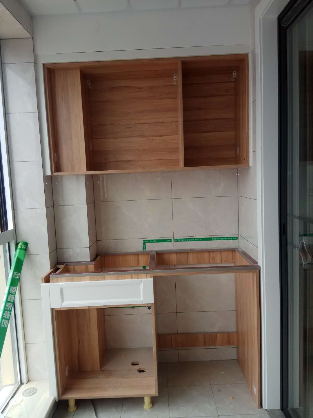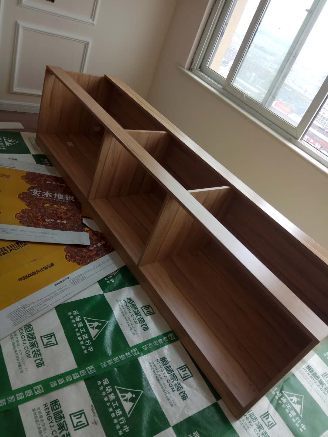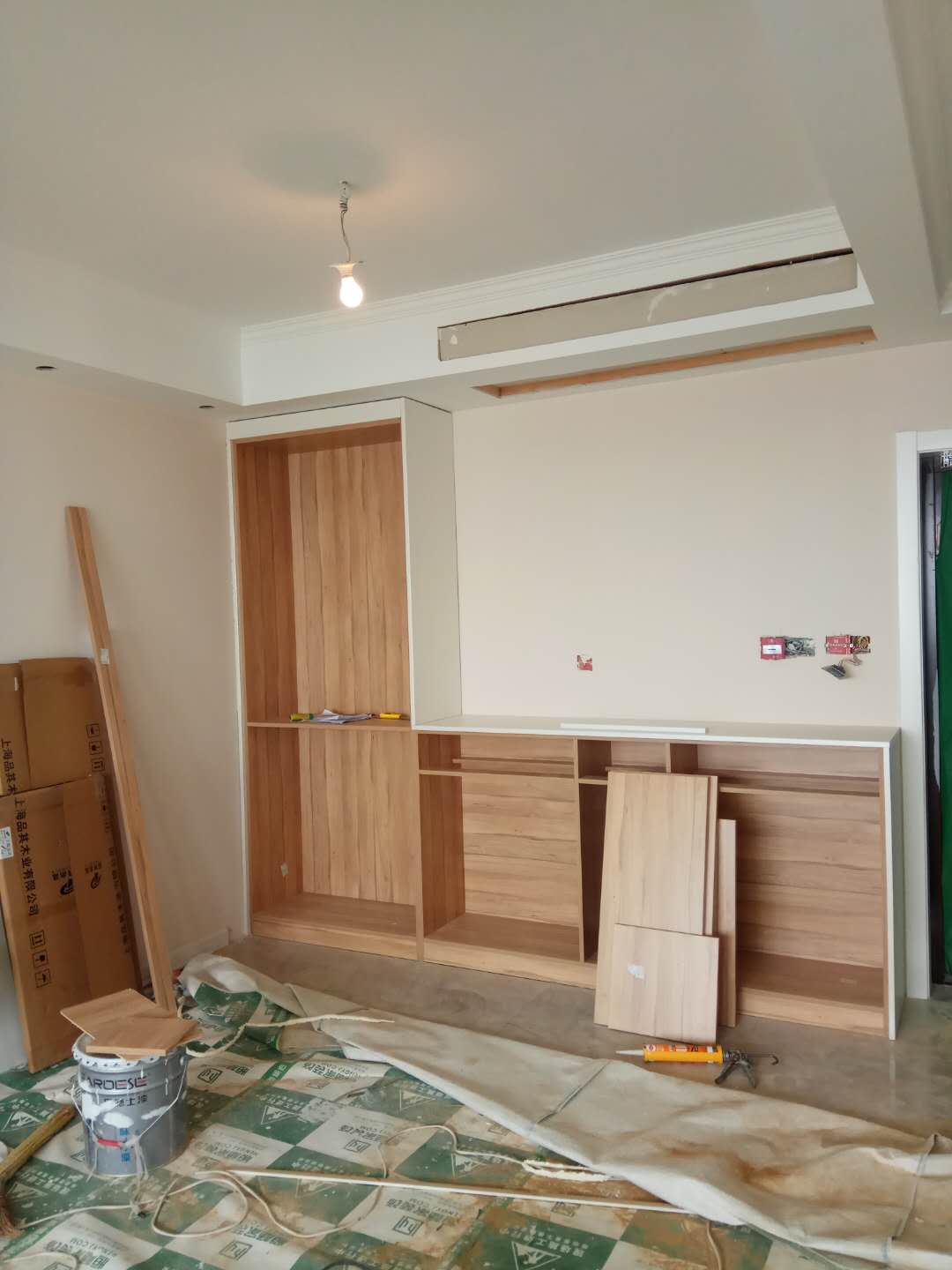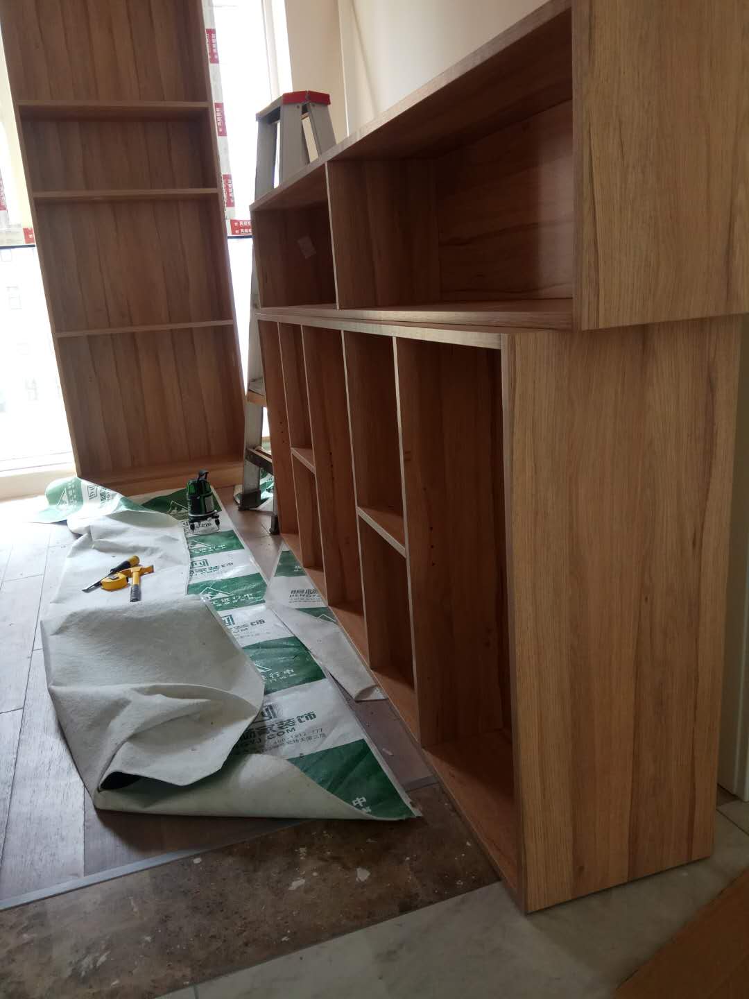 安裝中,柜體板已經拼裝完工了,還差門板,大概明天就裝好了,一起期待終成果吧。