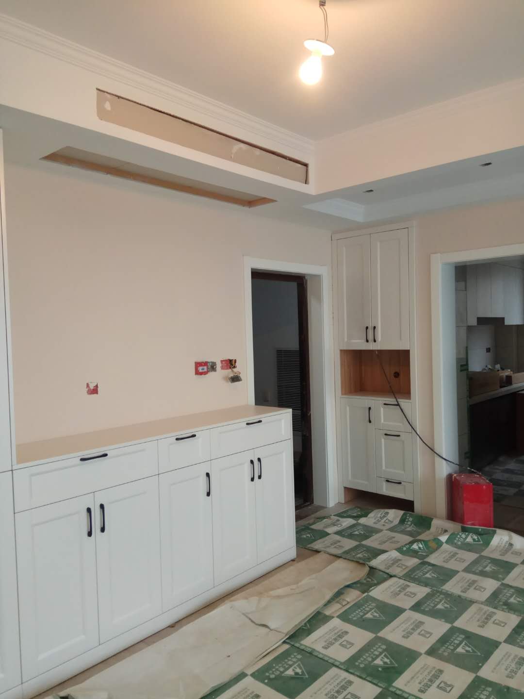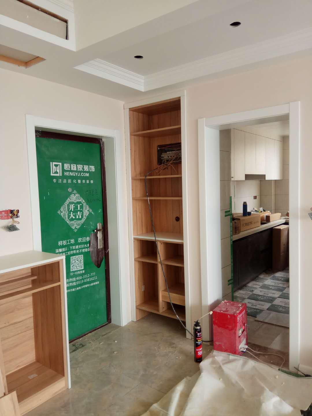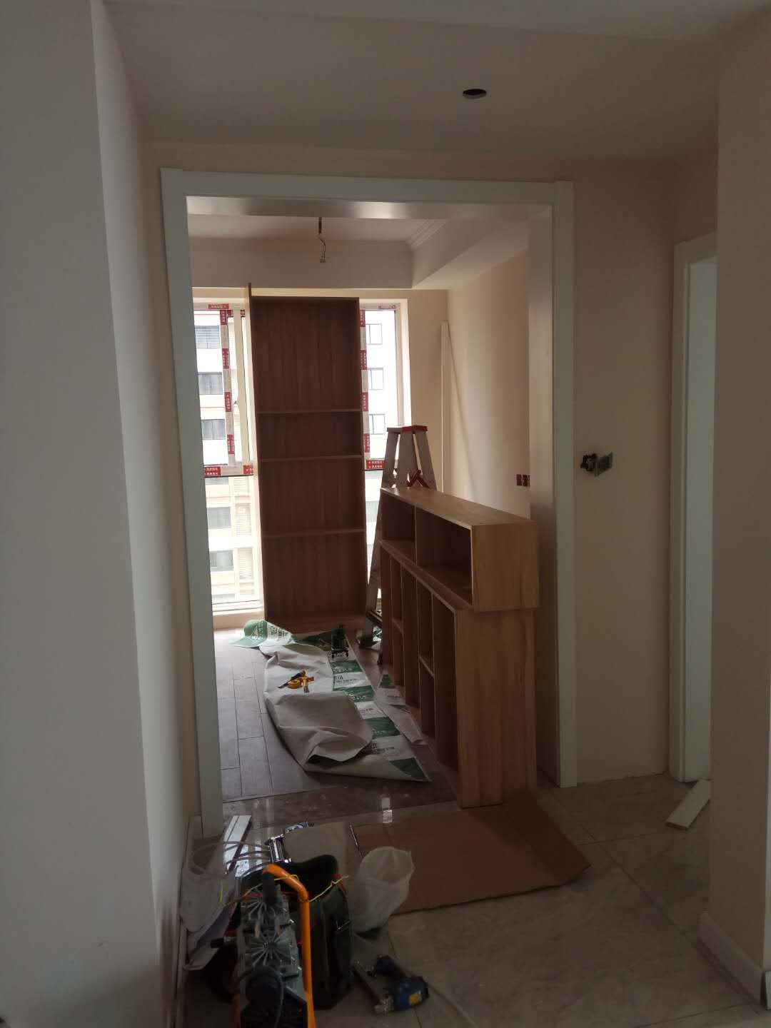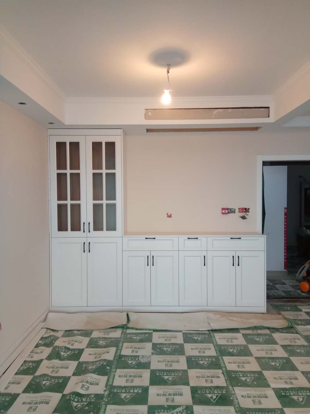 安裝中,柜體板已經拼裝完工了,還差門板,大概明天就裝好了,一起期待終成果吧。