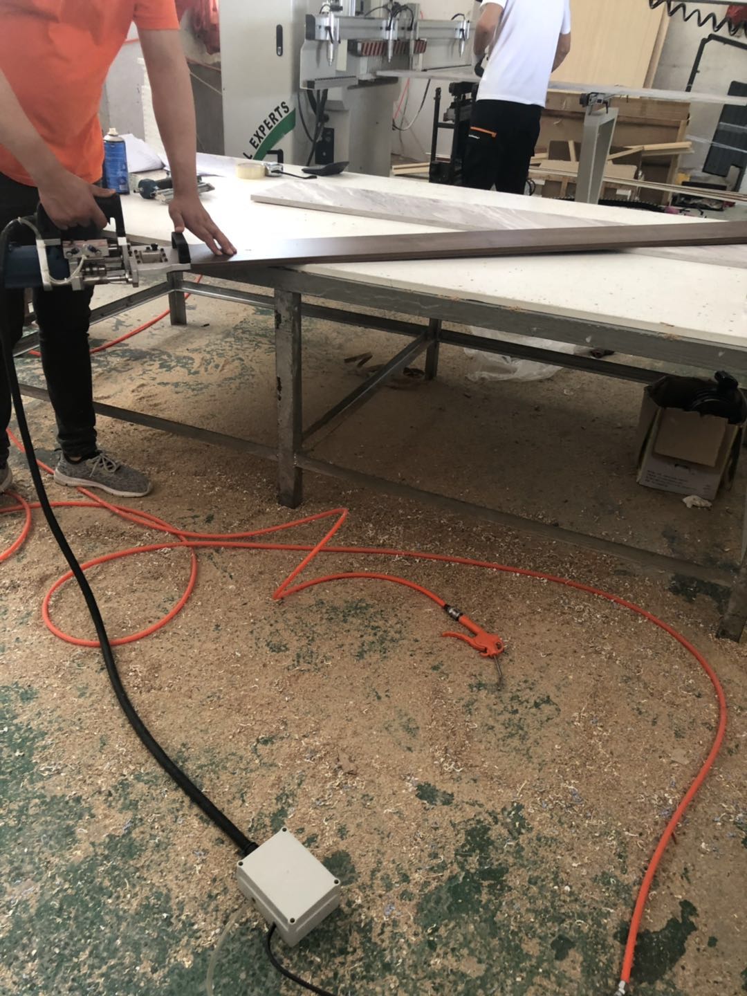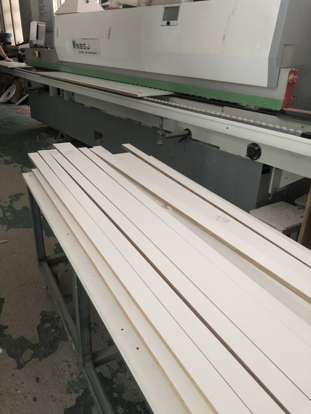 門板封邊中,采用法國熱熔顆粒膠,設備溫度達到200°C封出來的邊牢固,沒有爆邊!