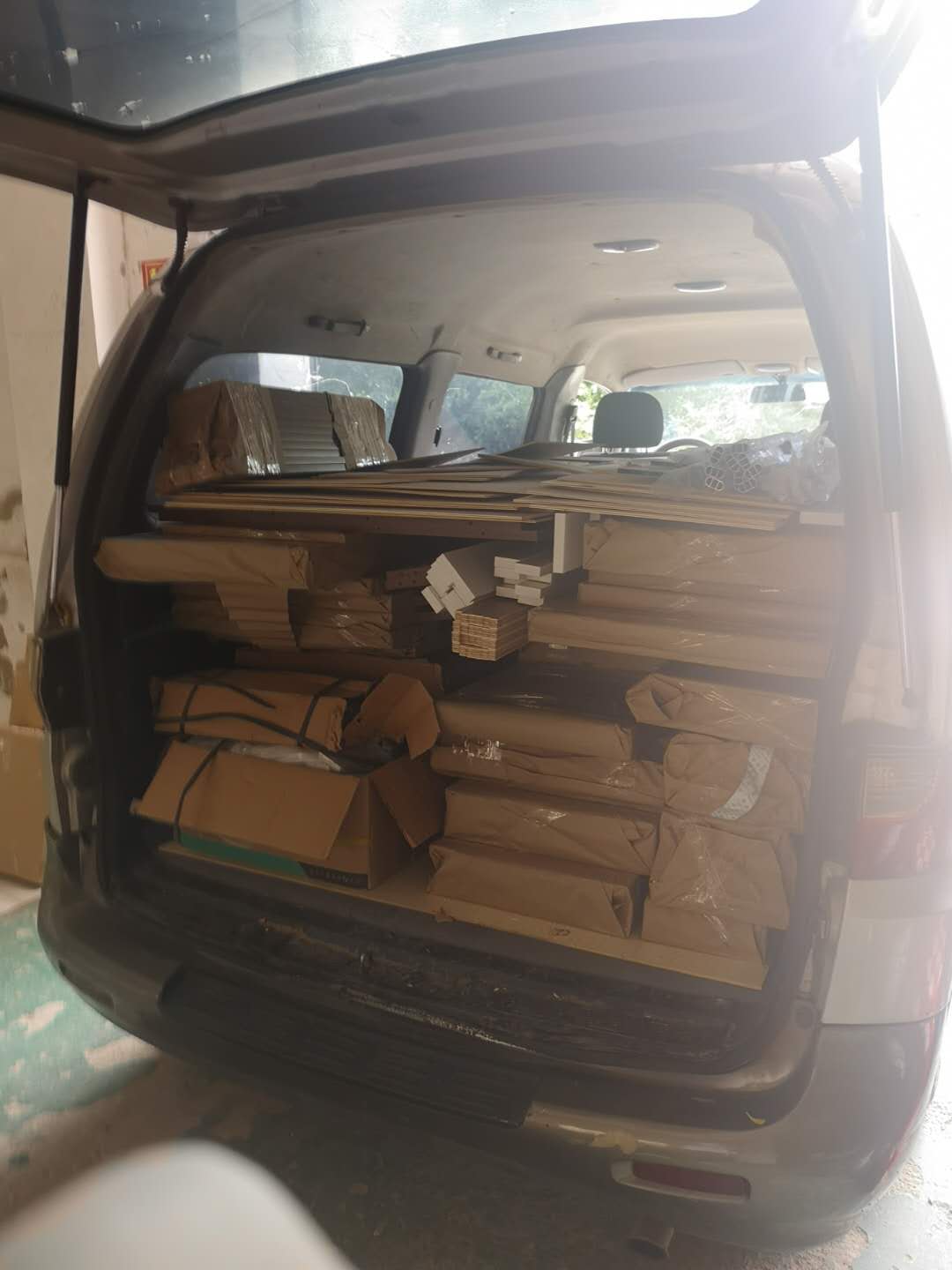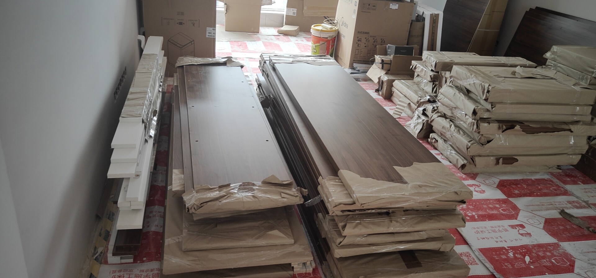 滿滿一車貨已經安全送到業主家里去了,,擺放整齊等待安裝。