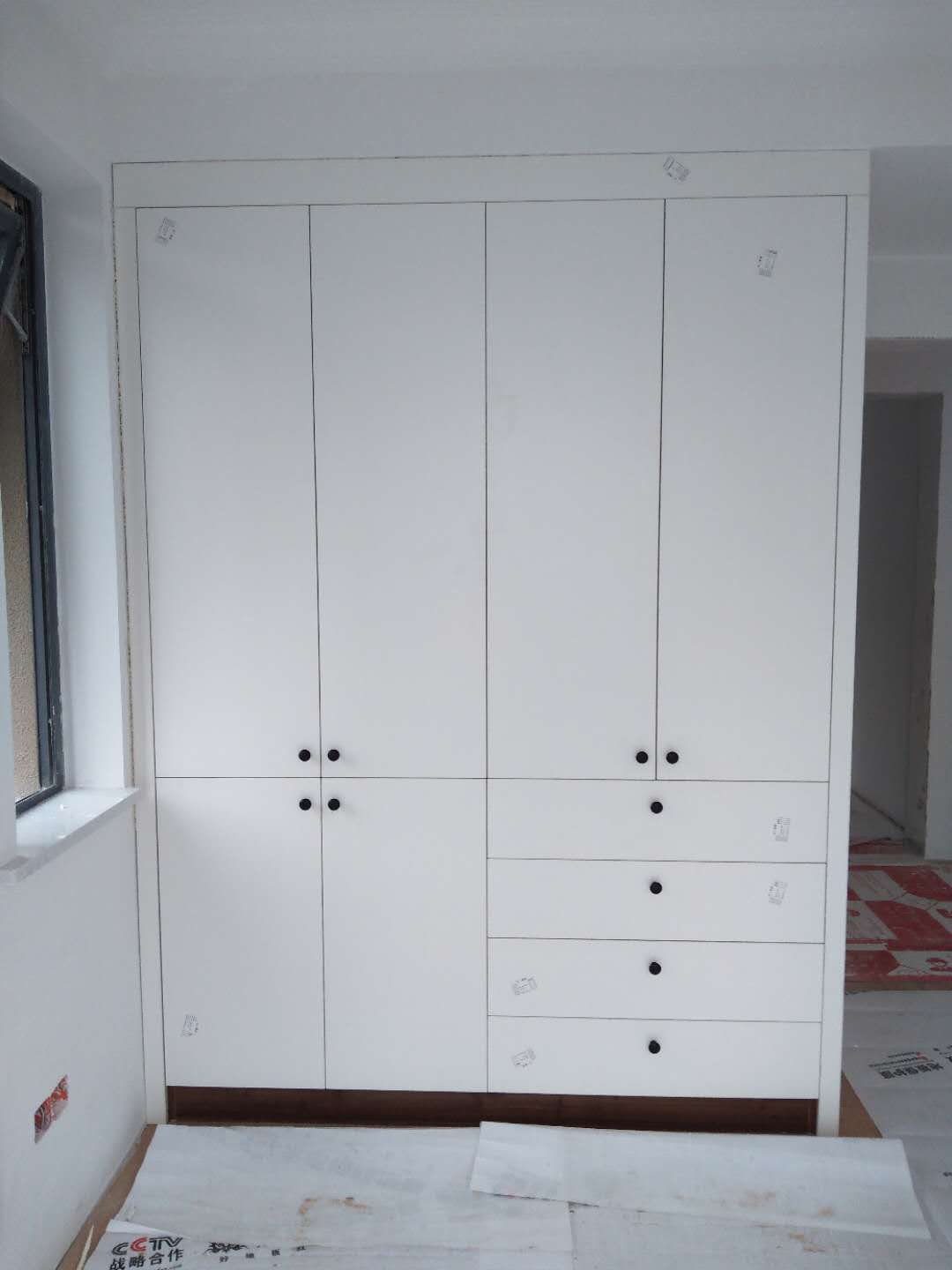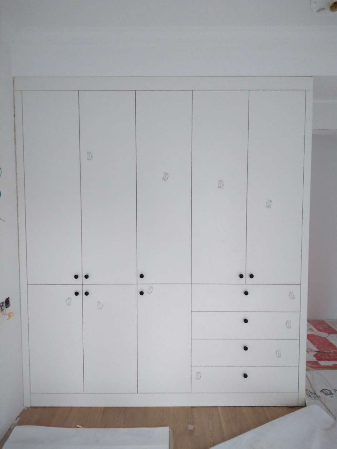 開始制作了,衣柜開板中,板材使用平安樹實木多層大富大貴制作,真材實料,有高級的藍光防偽標識。