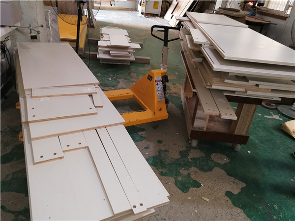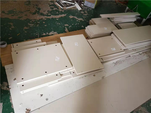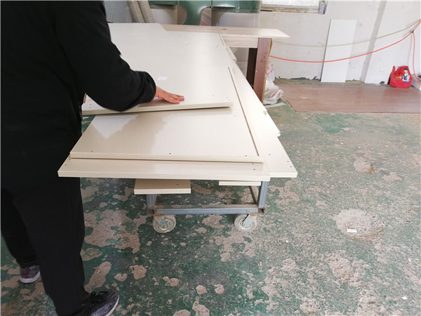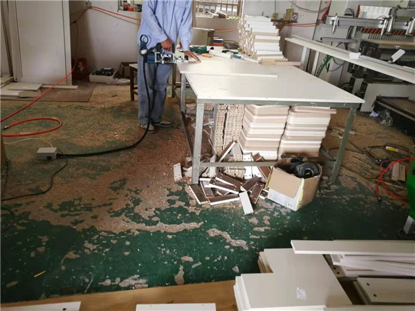 開始封邊咯!客戶家的柜子有點小多哦。封邊采用法國波士熱熔顆粒膠,設備溫度達到200°C封出來的邊牢固,沒有爆邊,完美無瑕。每塊板上都貼有小標簽,方便后期安裝師傅安裝。