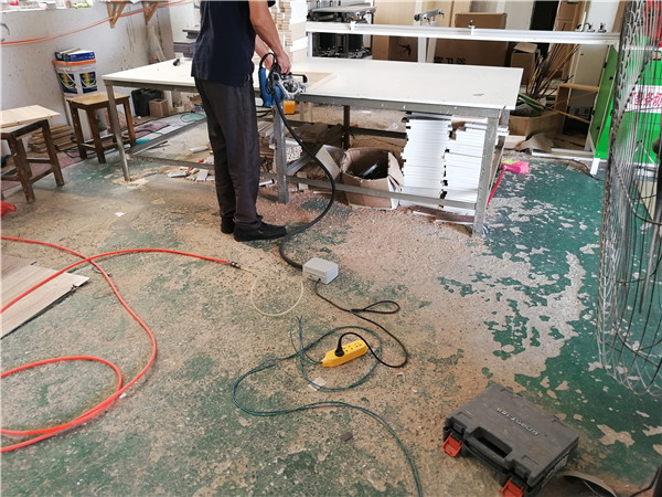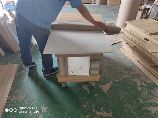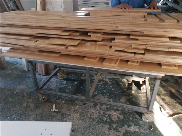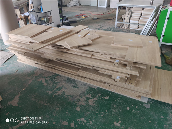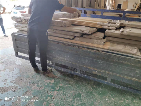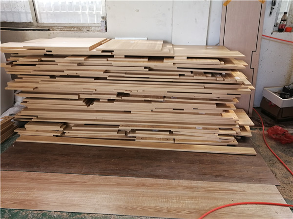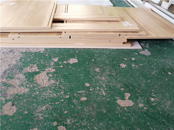 開始制作啦!柜體裁板中,專業(yè)設(shè)備裁板,沒有爆邊。板材使用平安樹實(shí)木多層板,