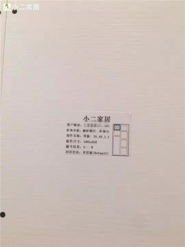 每塊板上都貼有小標簽,方便后期安裝師傅安裝,封邊條上都帶有小二家居logo的哦!方便后期售后。