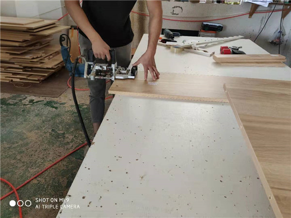 開始制作啦,衣柜裁板中,板材使用平安樹實木多層暖白