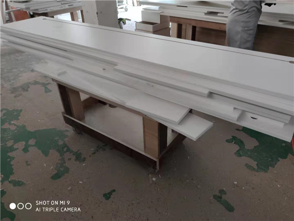 開始封邊啦!白色門板上午已封邊完畢,下午柜體板開始。封邊采用法國波士熱熔顆粒膠,