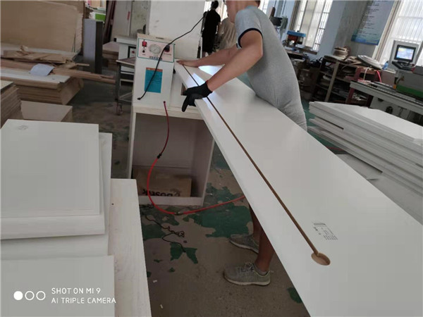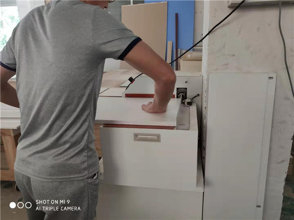 柜體門板封邊完畢,打孔中,完畢后就可以打包聯(lián)系客戶送貨啦!