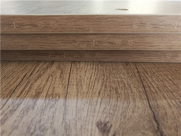 沒有爆邊,完美無瑕。板材自帶平安樹藍光防偽標(biāo)識,封邊條上都帶有小二家居logo的哦!方便后期售后。