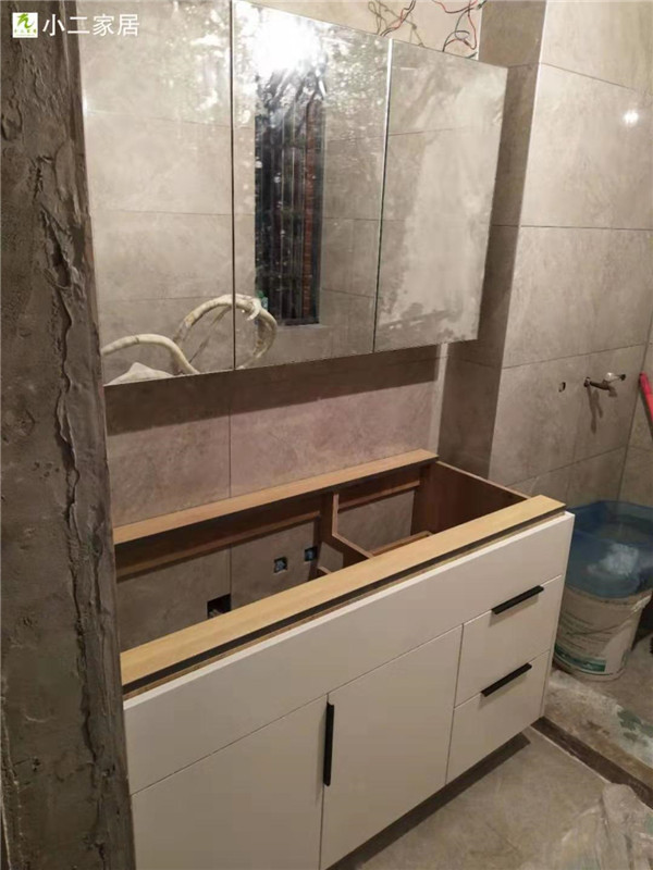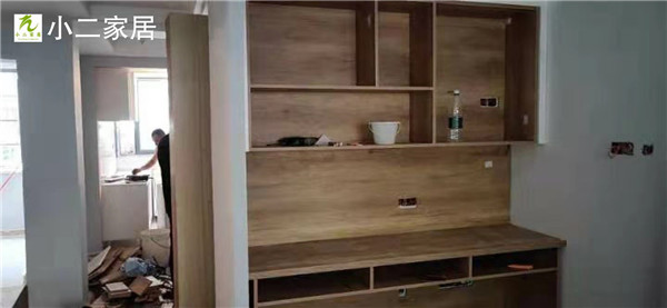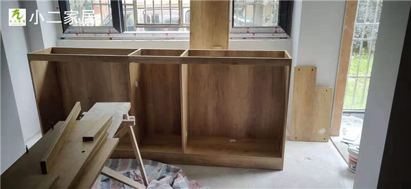 三位師傅一上午時間把柜體基本拼裝完畢了,速度真快。這柜體顏色整體效果蠻洋氣的,耐看。