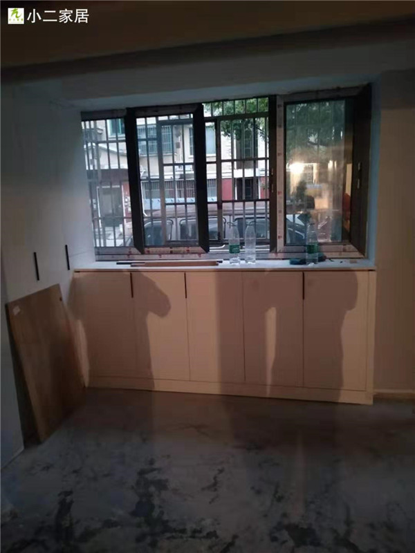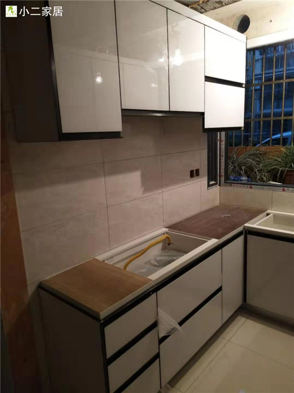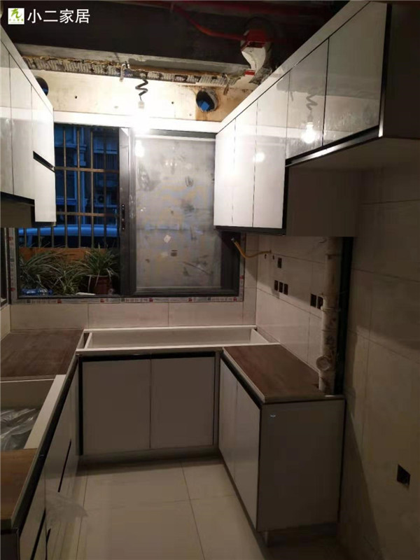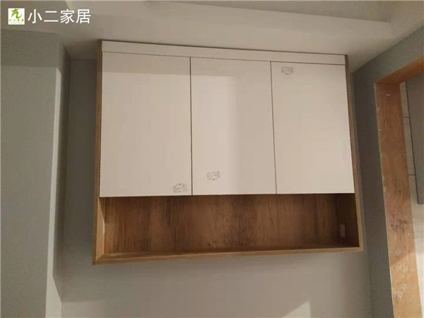 【小二跟單0037】上海寶山區(qū)水產(chǎn)西路,晶鋼門/雙飾面柜門加實木多層柜體櫥柜等,安裝完畢