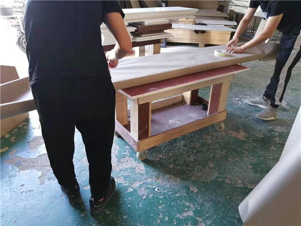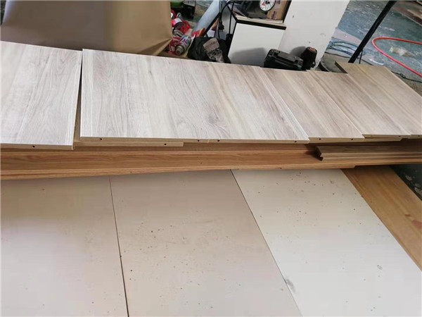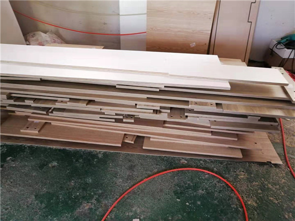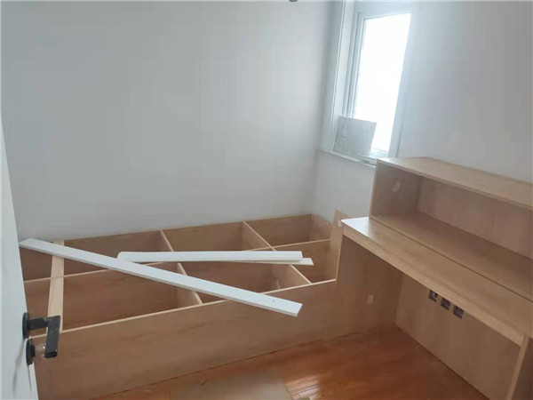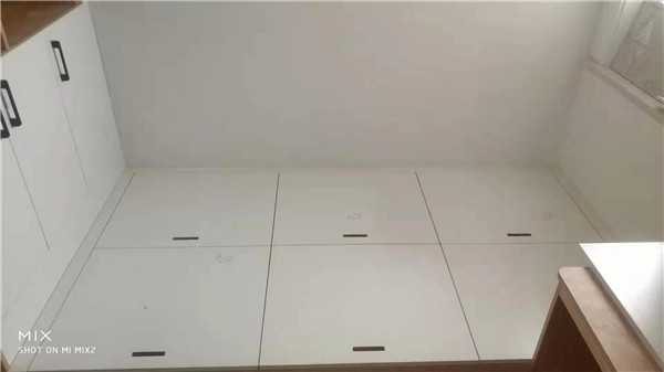 封邊采用法國波士熱熔顆粒膠,封出來的邊更牢固。榻榻米柜體業主選擇了兔寶寶品牌,封邊可見。每塊板上都貼有小標簽,方便后期安裝師傅安裝。