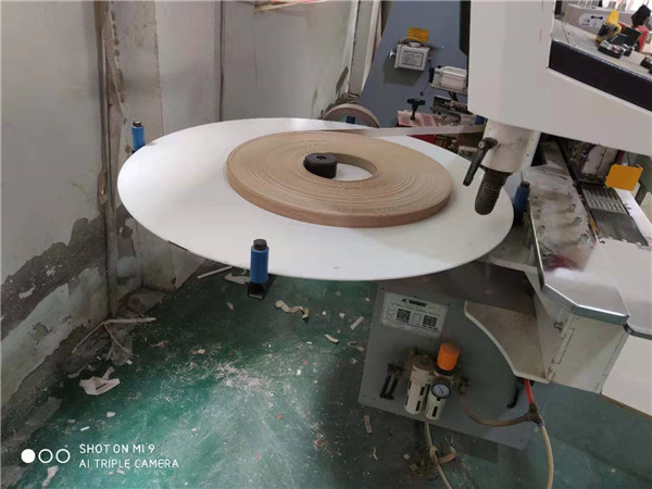 開始封邊啦,封邊采用的是法國博士熱熔膠,溫度達到190-200℃,封出來的邊才完美不容易產生爆邊。
