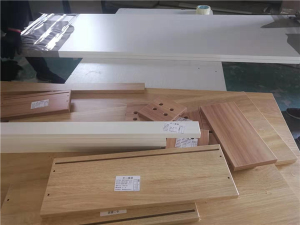 開始封邊啦,封邊采用法國波士熱熔顆粒膠,設備溫度達到200°C封出來的邊牢固,沒有爆邊,完美無瑕。每塊板上都貼有小標簽,方便后期安裝師傅安裝,封邊條上都帶有“優端”logo的哦!方便后期售后。