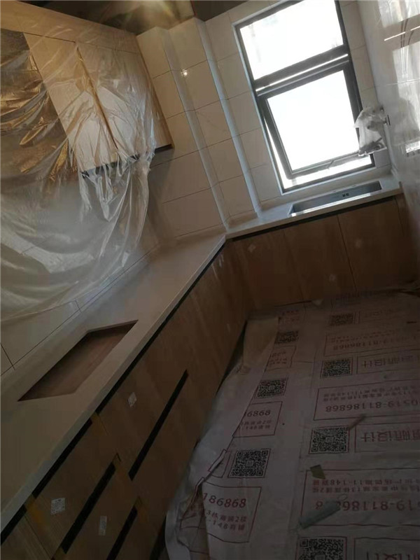 部分門板抽面倒角中,倒角的好處:第一整體效果美觀,第二以防后期開門磕碰到。