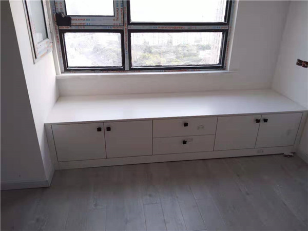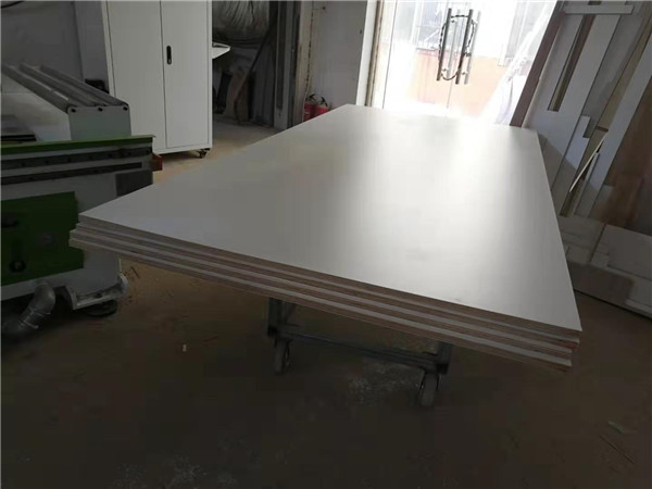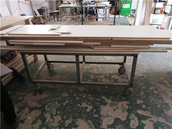 裁板篇:柜體裁板中,板材使用平安樹實木多層板,,霧麻暖白E0級制作,有高級的藍光防偽標識哦。