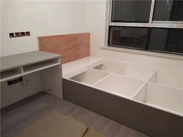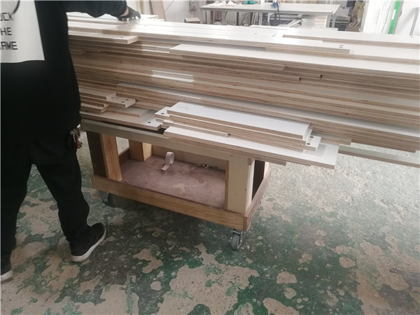 開始制作啦,柜體裁板中,板材使用平安樹實木多層暖白E0級制作,有高級的藍光防偽標(biāo)識哦
