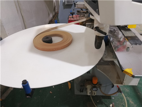 開始封邊啦,封邊采用法國波士熱熔顆粒膠,設(shè)備溫度達到200°C封出來的邊牢固,沒有爆邊,