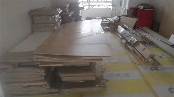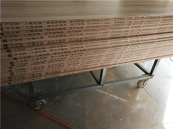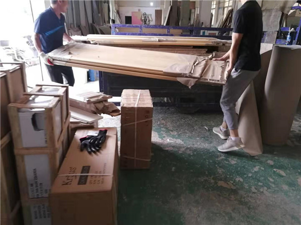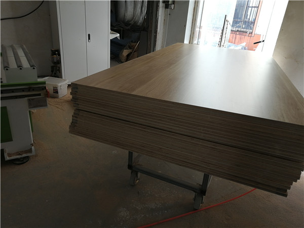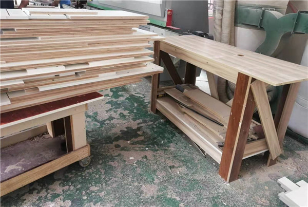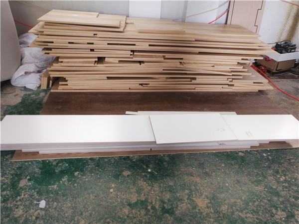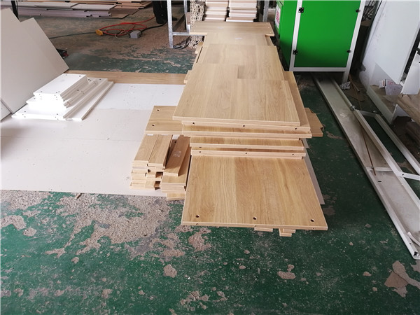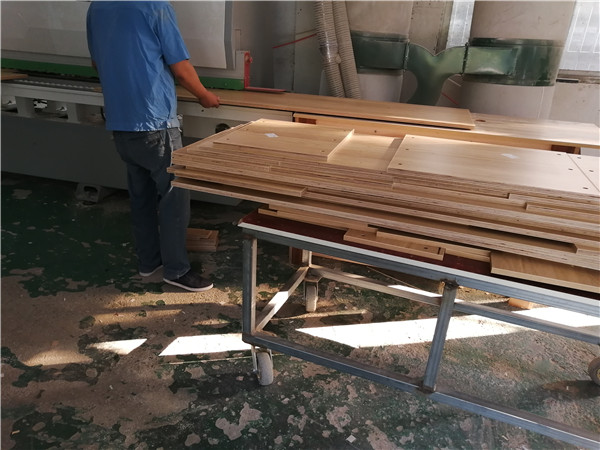 開始制作啦!專業設備裁板,沒有爆邊。柜體裁板中,板材使用平安樹實木多層板,清水橡木E0級制作,有高級的藍光防偽標識哦