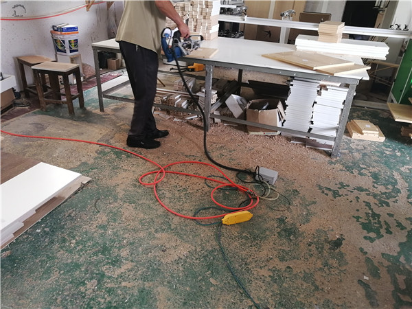 部分門板抽面倒角中,倒角的好處:第一整體效果美觀,第二以防后期開門磕碰到。