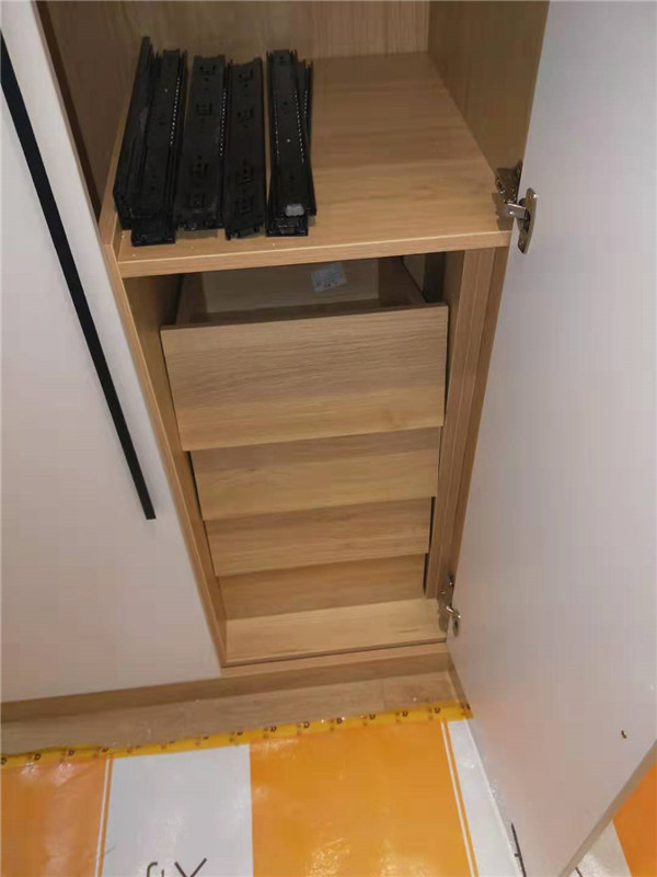 客戶家柜子都蠻好看的,配的拉手也不錯,還剩4個抽屜今天就裝好了,一起來看一下吧