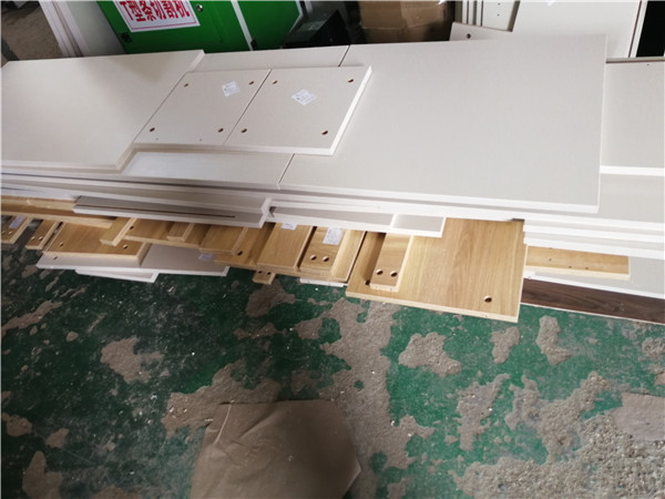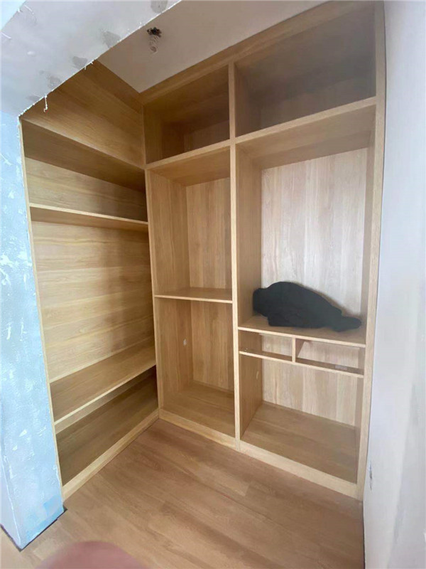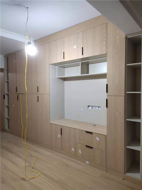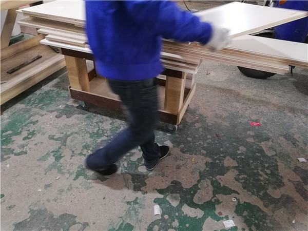 開始制作啦,柜體裁板中,板材使用平安樹實木多層皮紋 、清水橡木E0級制作,有高級的藍光防偽標識哦