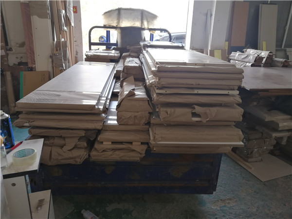 開始封邊啦,封邊采用法國波士熱熔顆粒膠,設備溫度達到200°C封出來的邊牢固,沒有爆邊,完美無瑕。每塊板上都貼有小標簽,方便后期安裝師傅安裝,封邊條上都帶有小二家居logo的哦!方便后期售后。