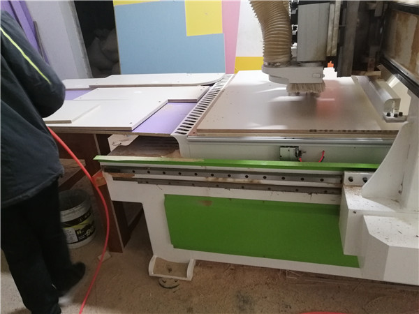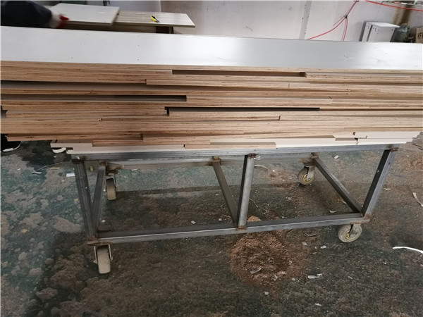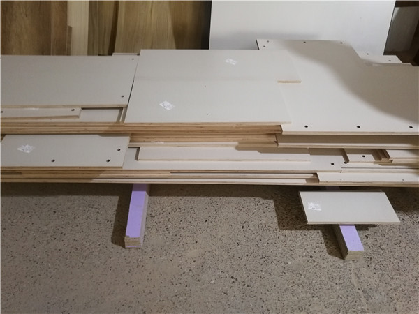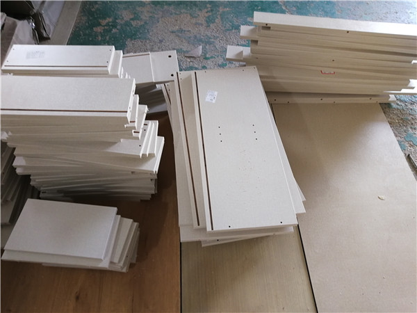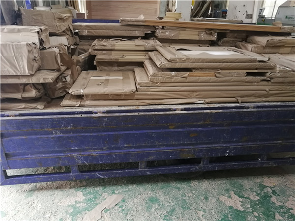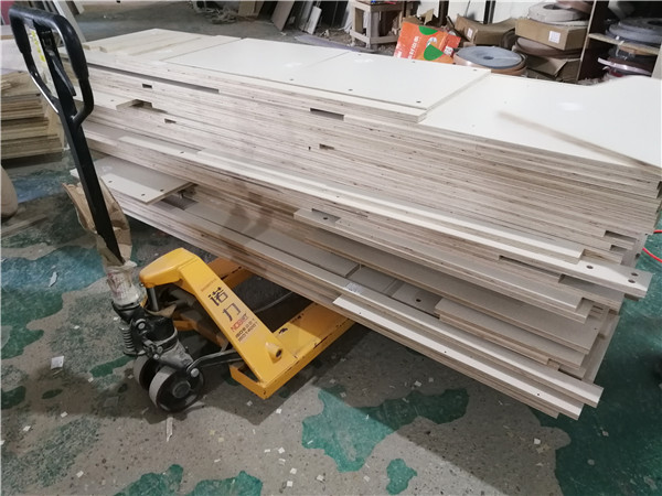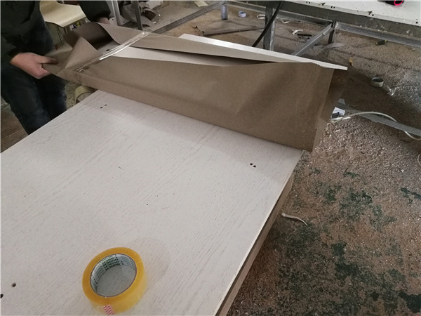 開始制作啦!皮紋柜體板裁板中,專業設備裁板,沒有爆邊。板材使用平安樹實木多層板E0級制作,有高級的藍光防偽標識哦
