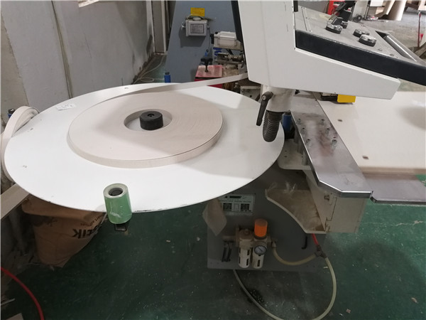 開始封邊啦,封邊采用法國波士熱熔顆粒膠,設備溫度達到200°C封出來的邊牢固,沒有爆邊,完美無瑕。