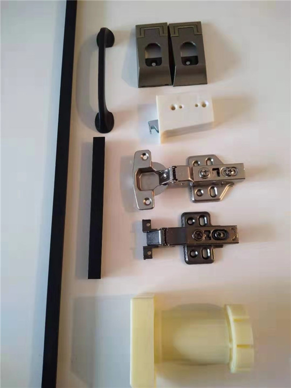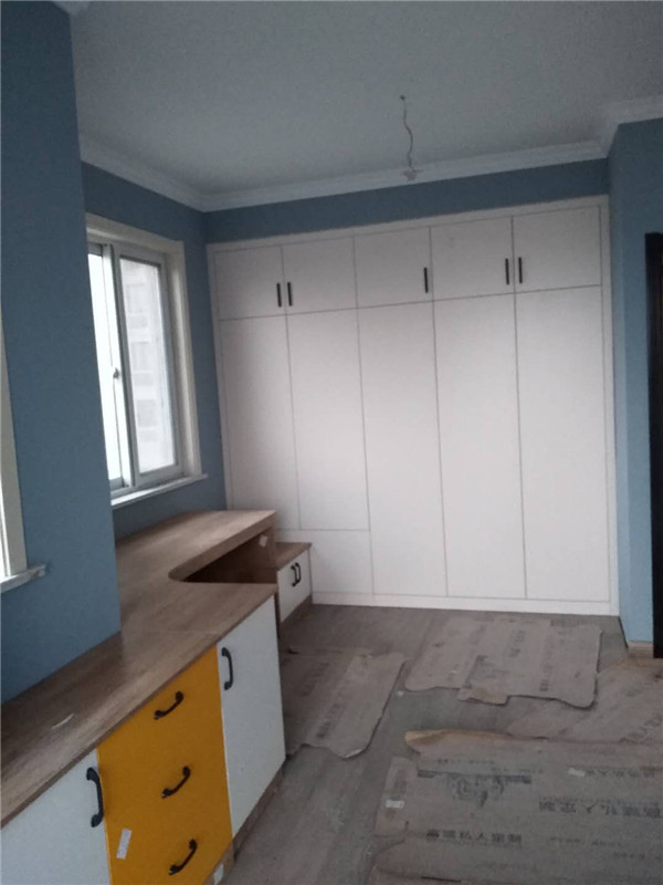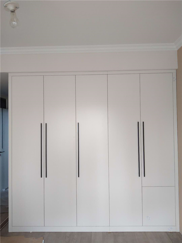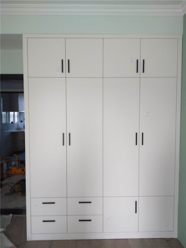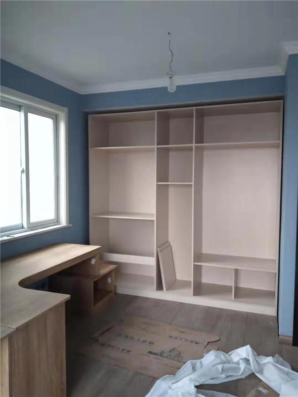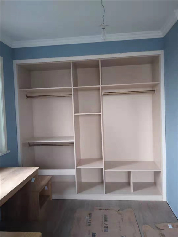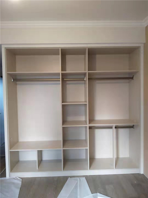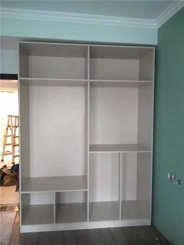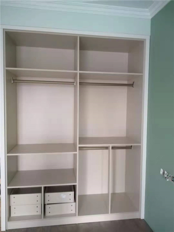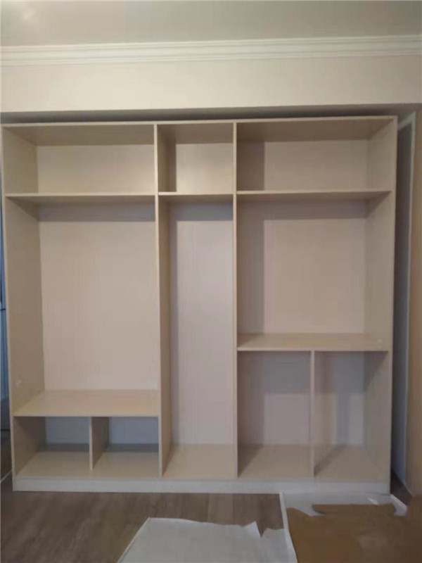 柜體拼裝完畢,大體模樣已經出來了,再有一天把柜門裝上就差不多結束啦,好看的柜子少不了搭配高品質的五金:海蒂詩導軌,諾米鉸鏈,反彈器,ABS尼龍柜腳,索菲亞掛衣架等