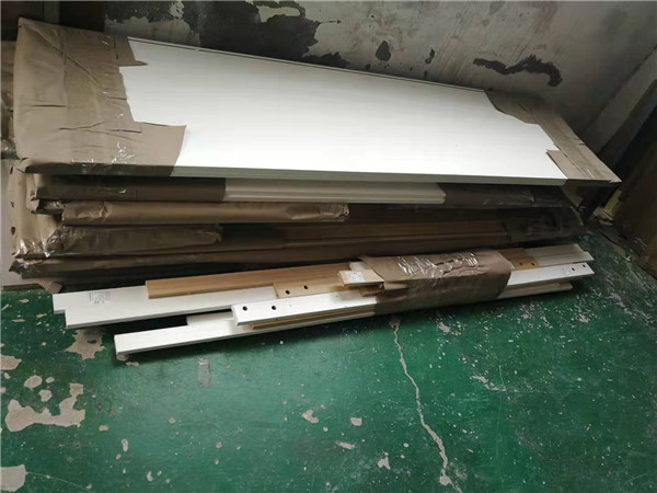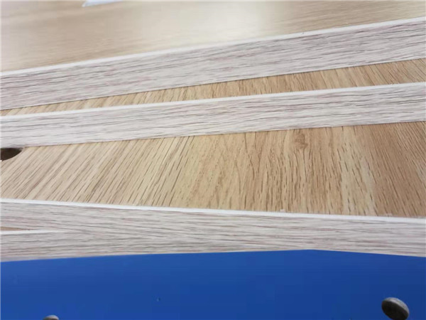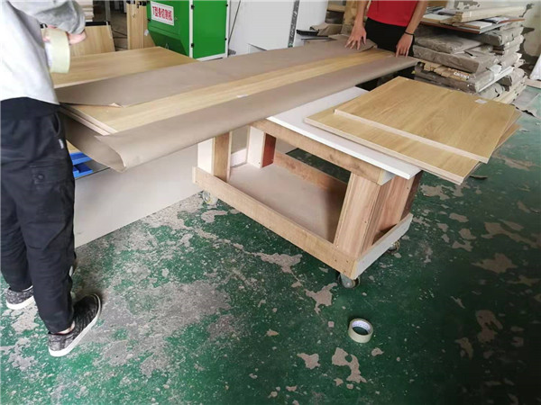 師傅加班已經把封邊結束了,封邊采用法國波士熱熔顆粒膠,設備溫度達到200°C封出來的邊牢固,沒有爆邊,完美無瑕。每塊板上都貼有小標簽,方便后期安裝師傅安裝。