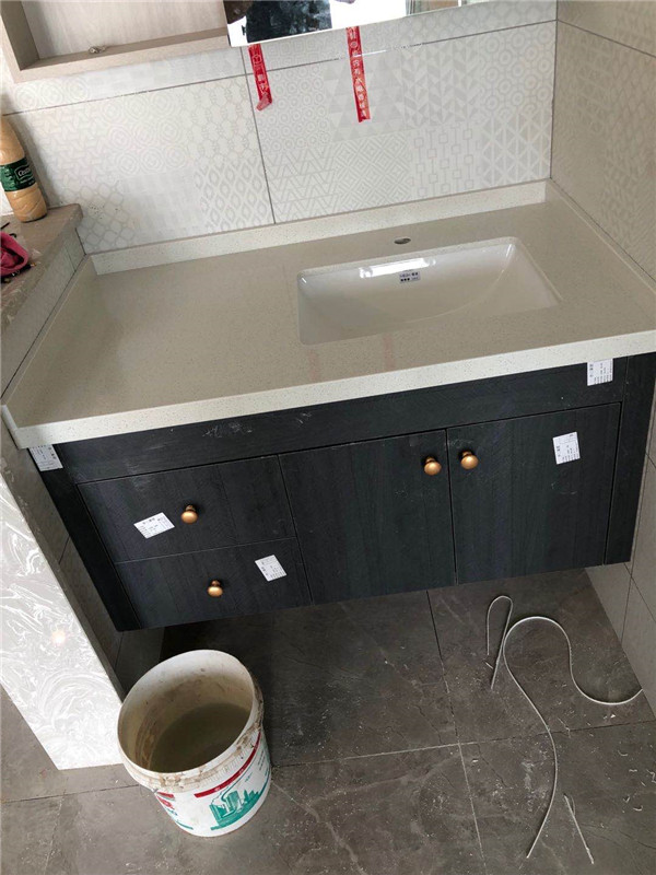 臺面安裝完畢,業主家采用的都是臺下盆,后期打理起來也比較方便。