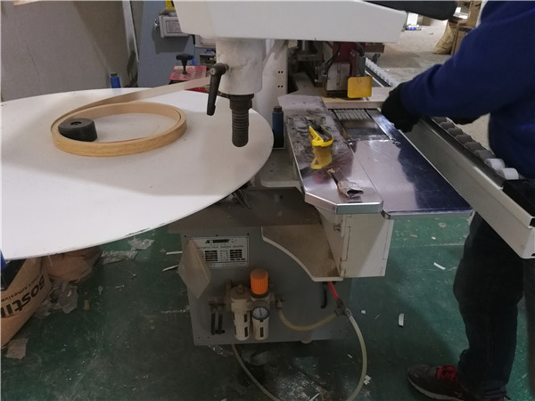 開始封邊啦,封邊采用法國波士熱熔顆粒膠,設備溫度達到200°C封出來的邊牢固,沒有爆邊,完美無瑕。