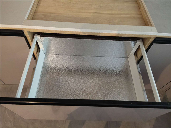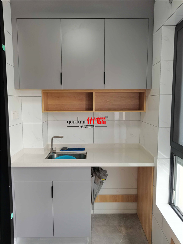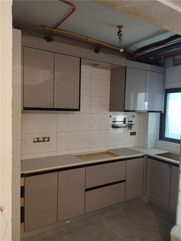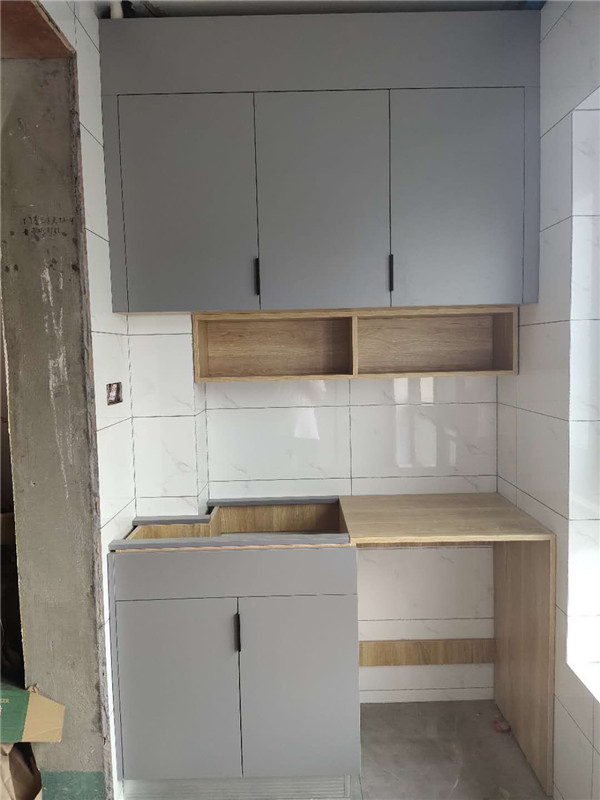 經(jīng)過幾天的努力,柜子的整體效果出來啦,色彩搭配還是很養(yǎng)眼的。櫥柜采用的晶鋼門后期有油煙也比較好打理。