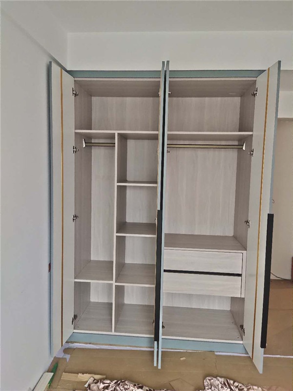 衣柜柜體封邊中,其他柜體進(jìn)入打包環(huán)節(jié),我家柜子板材都是整個包起來的,