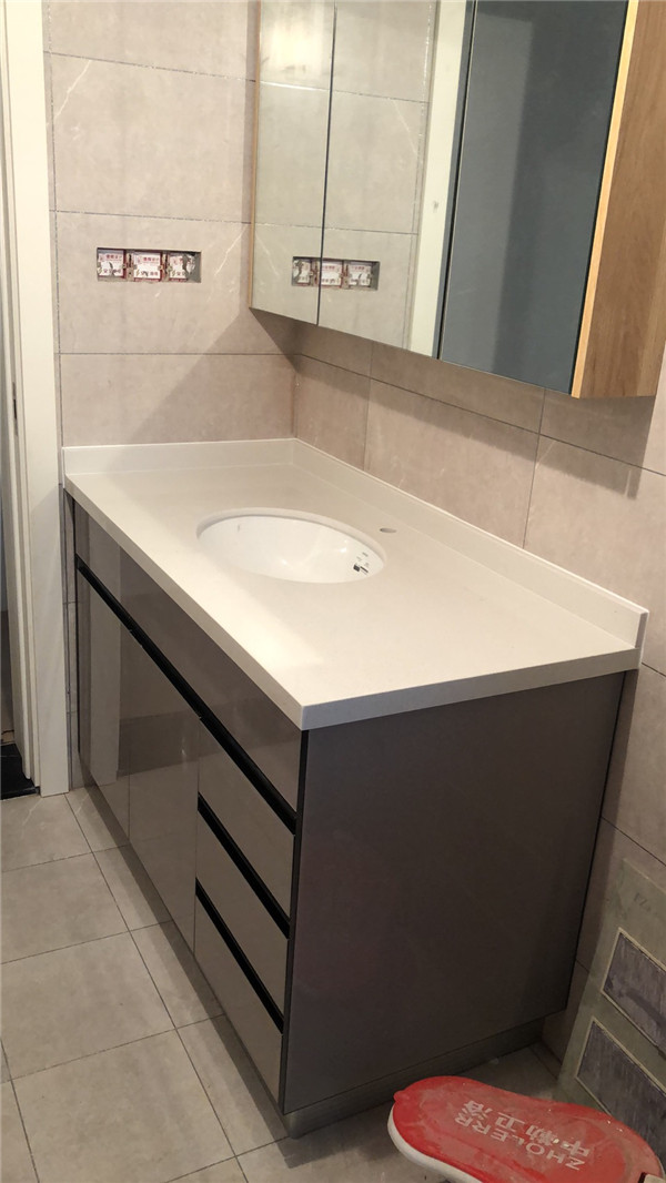 、灶具、浴柜臺盆放置在現(xiàn)場,后期臺面安裝需用到。柜子安裝好后進(jìn)入臺面測量環(huán)節(jié),臺面量完后一個星期內(nèi)送貨并安裝。