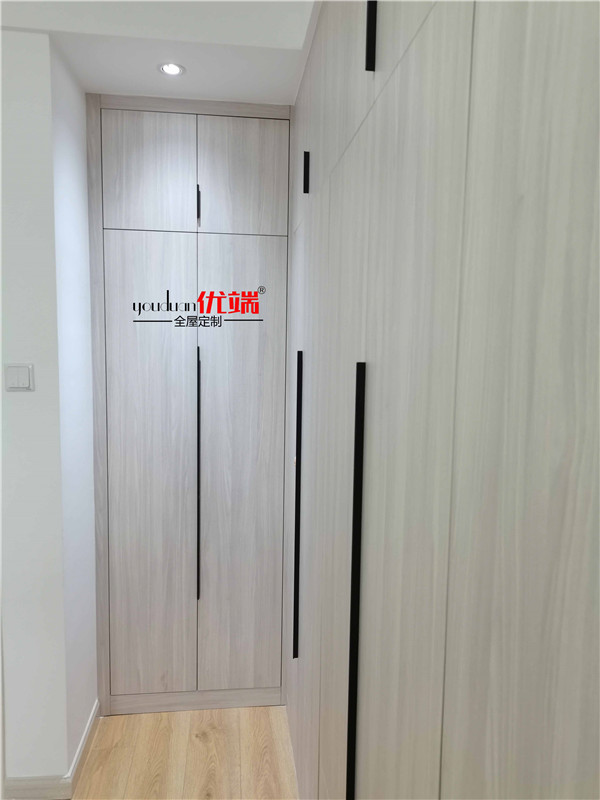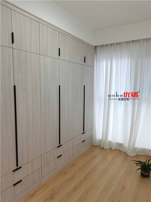 還有個大大的衣帽間,后期換季衣服被子統(tǒng)統(tǒng)放進(jìn)去。從柜子的內(nèi)部結(jié)構(gòu)來看,